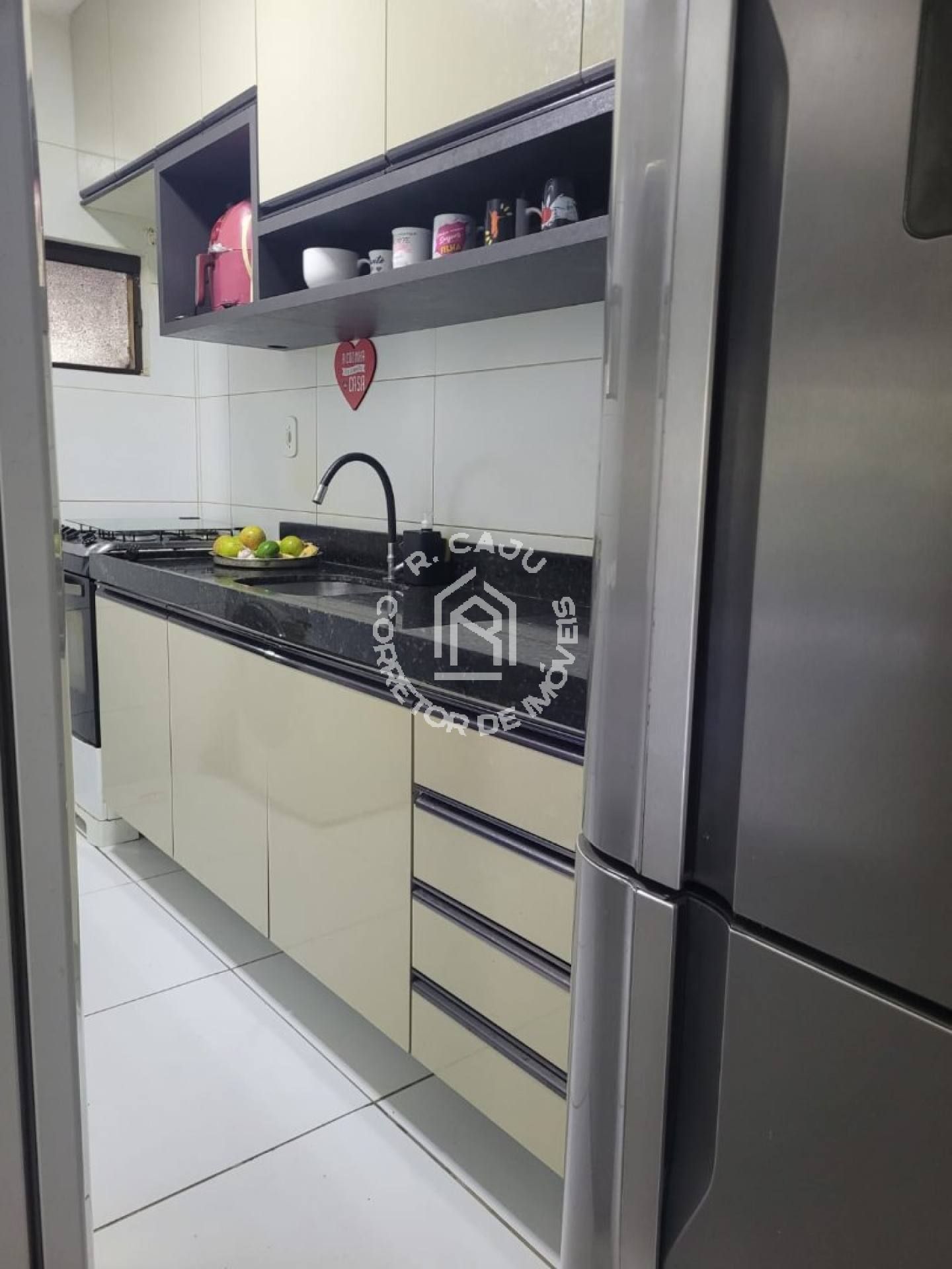 Cozinha equipada com móveis modulados;